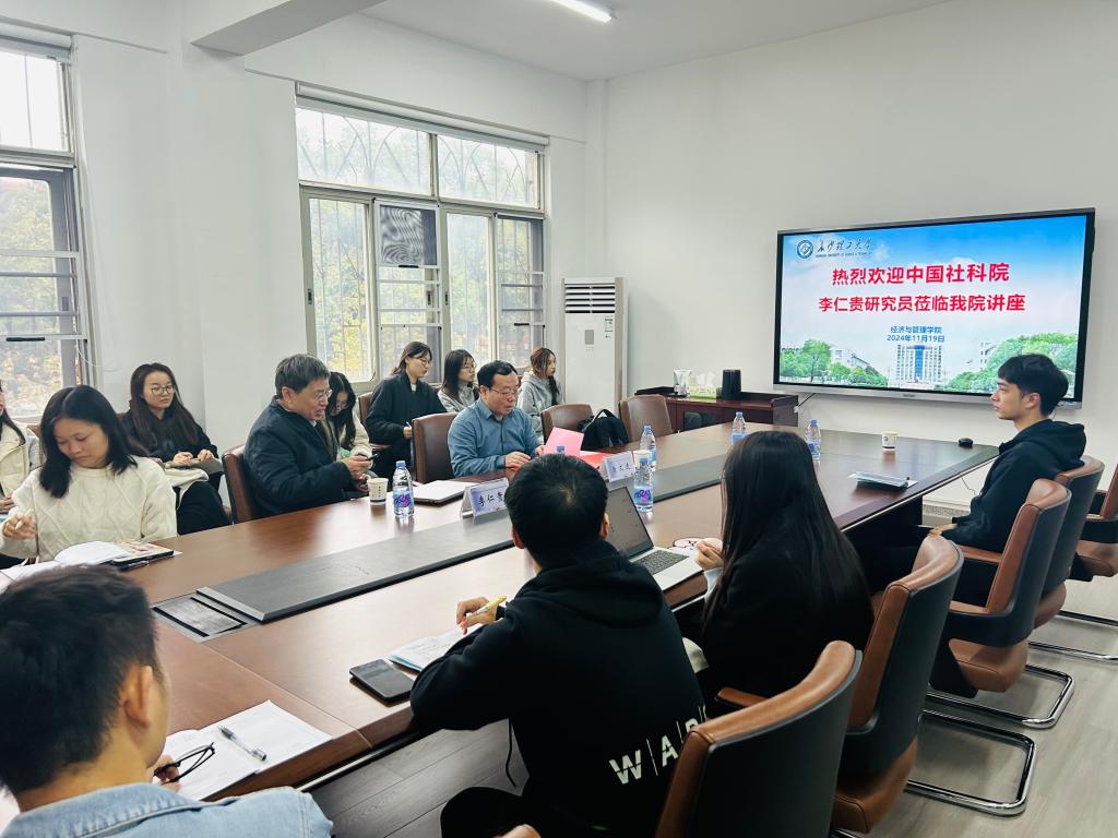 2024年11月19日,中国社科院李仁贵研究员应邀在金盆岭校区经管大楼216室主讲金岭学术大讲堂第30期,讲座题目为“2024年度诺贝尔经济学奖解读”。学院师生共30余人参加了本次讲座,讲座由唐文进教授主持。