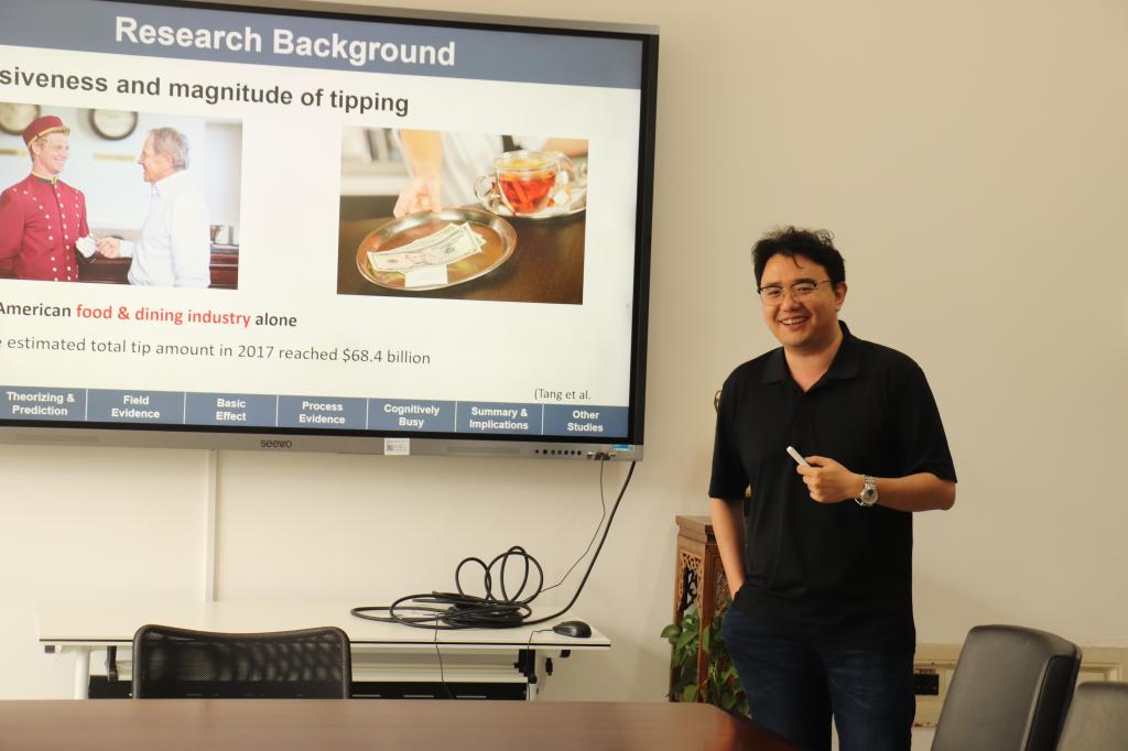 本次讲座聚焦中国平台经济领域的独特现象,为在座师生揭示了数字平台服务场景中的服务打赏的设计方式对消费者决策的影响,兼具学术深度与实践价值。孟教授以美团外卖骑手打赏界面的变化为例,创新性地提出"物质参照型小费推荐机制",将打赏金额转化为具体的物质参照,平台向消费者展示的打赏推荐在显示金额的同时,也会显示“相当于一杯矿泉水”的实物对照;这种具象化的呈现不仅使小费支付意愿提升,平均支付金额也会增长。孟教授特别强调,参照物的选择需遵循“消费场景关联性”与“价值感知显著性”双重原则,如在美团等外卖APP上的物质参照物应采用“矿泉水/鸡腿”而非“牙刷”。