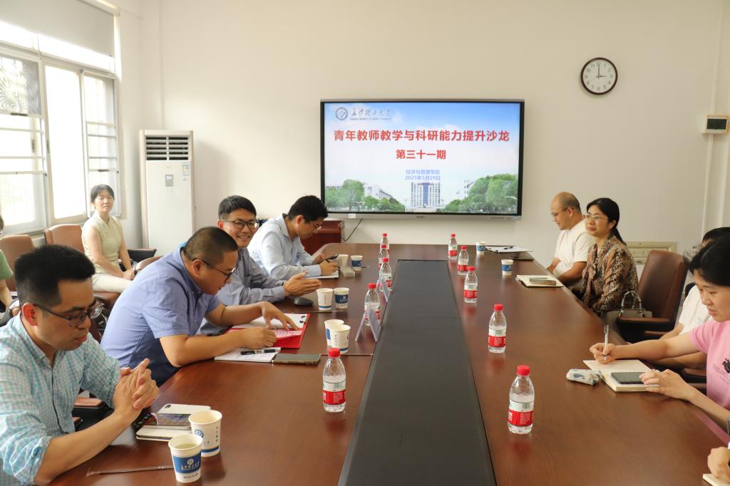 2025年5月29日下午,经管学院第三十一期青年教师教学与科研能力提升沙龙在金盆岭办公大楼216室举行,本期沙龙特邀华东理工大学李佑平教授主讲,经贸系主任杨立卓副教授主持,学院青年教师和部分研究生生参加了此次活动。
