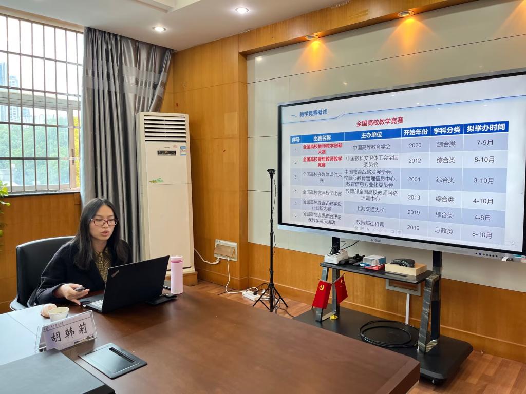沙龙嘉宾青年教师范辰(青教赛湖南省二等奖获得者)、胡韩莉(创新赛湖南省二等奖获得者)先后作了主题为“教学竞赛助力教学能力提升”的分享,着重介绍了青年教师如何对标青教赛和创新赛等重要教学大赛,来提升自我的教学素养和能力,滋养教学情怀,与学生们教学相长、共同进步。在场青年教师们与嘉宾以及参会领导们作了热烈的交流,沙龙持续了三个多小时。