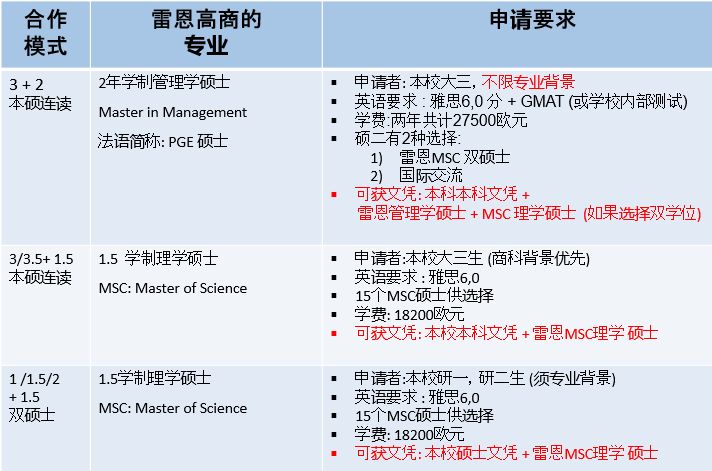 伟德betvlctor1946源于英国两年制或三年制在读硕士在伟德betvlctor1946源于英国完成1年或1.5年或2年的硕士学习后,赴雷恩商学院进行1.5年的理学硕士(MSC: Master of Science)课程学习。同时满足伟德betvlctor1946源于英国和雷恩商学院学分和论文要求,达到两校毕业和授位条件,可获得本校硕士学位和雷恩商学院理学硕士学位。