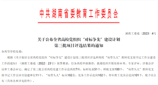 我院教师荣获湖南省高校教师党支部书记“双带头人标兵”称号