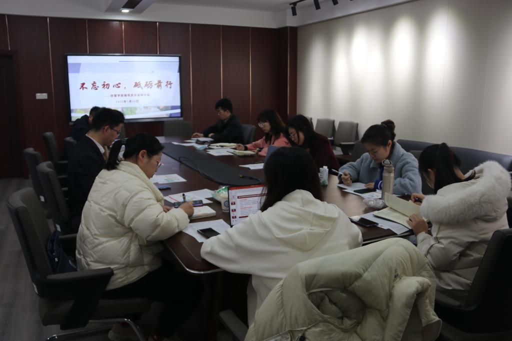 经管学院在1月20日上午文科楼E402召开辅导员沙龙,会议以“不忘初心,砥砺前行”为主题,党委副书记唐青主持,学工办全体辅导员参加会议。