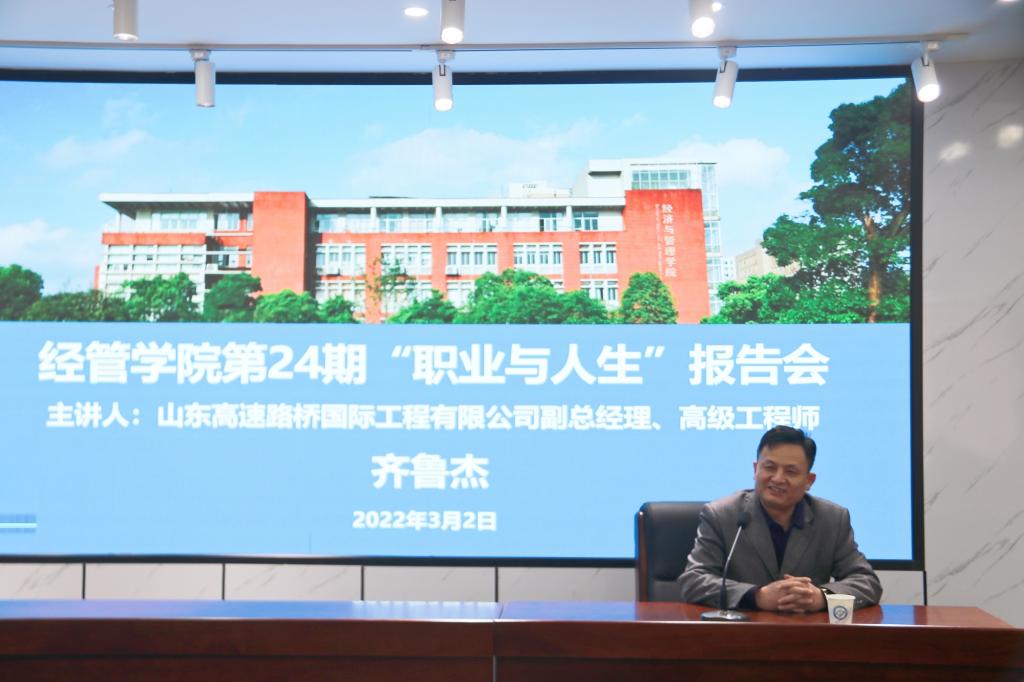 3月2日上午,经管学院第24期“职业与人生”报告会在云塘校区文科楼D207顺利举行。主讲嘉宾是伟德98届校友、山东高速路桥国际工程有限公司副总经理、高级工程师齐鲁杰以及山东高速路桥国际工程有限公司人力部部长王纪忠,干事刘廷霄,参与报告会的还有经管学院就业专干何涛、叶鑫和部分大三、大四学生。报告会由经管学院党委副书记唐青主持。