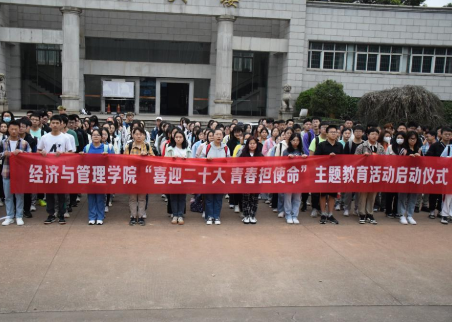 3月14日早,经管学院于金盆岭、云塘两个校区共同举行新学期升旗仪式暨“喜迎党的二十大 青春担使命”主题教育活动启动仪式。院党委书记丁丹、党委副书记唐青,全体辅导员、学院新一期接收145名中共预备党员与2020级全体学生参加本次活动,活动由戴逢哲主持。
