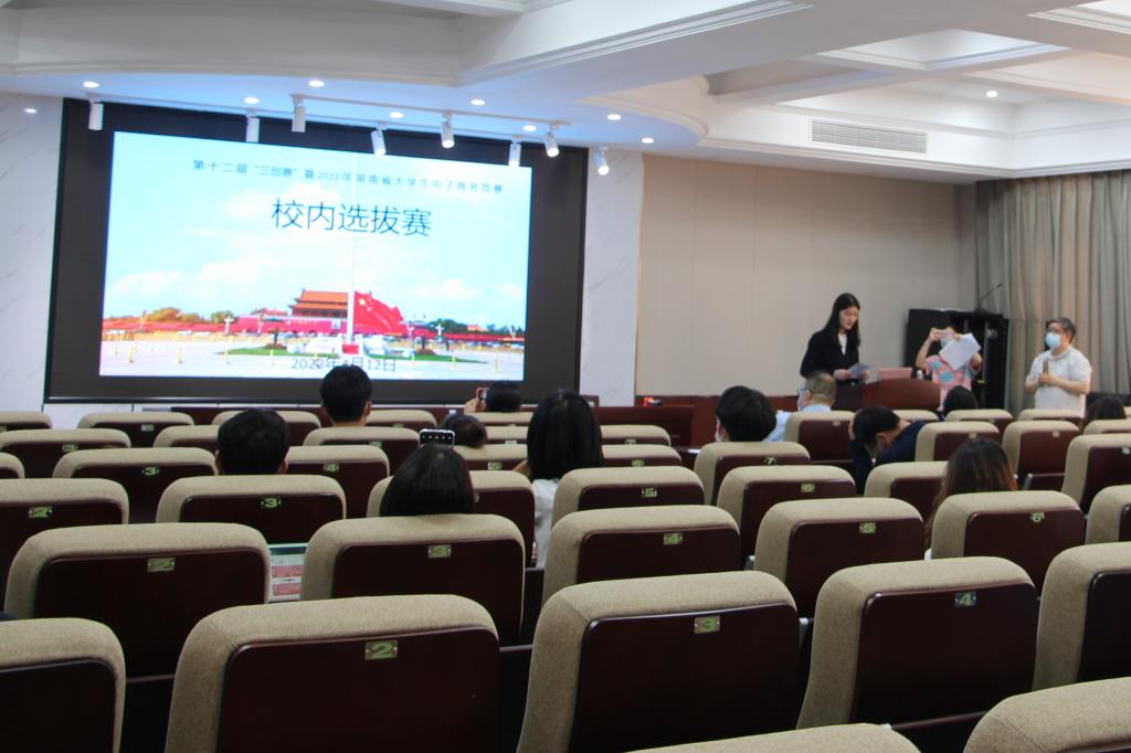 4月12日下午,第十二届“三创赛”暨2022年湖南省大学生电子商务校内选拔赛于云塘校区文科楼D207顺利举行。经管学院副院长刘坚出席会议,刘洪深、邓英和张丹担任评委,院团学会创新创业部副部崔美燕担任主持。