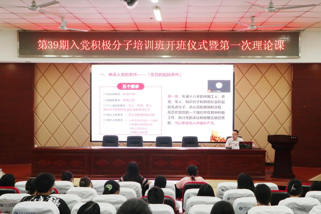 4月25日晚,经济与管理学院第39期入党积极分子培训班开班仪式暨第一次理论课于云塘校区文科楼A200举行。经管学院党委副书记唐青、党建辅导员叶鑫出席开班仪式。本次理论课由化学化工学院党委书记宋刘斌主讲。