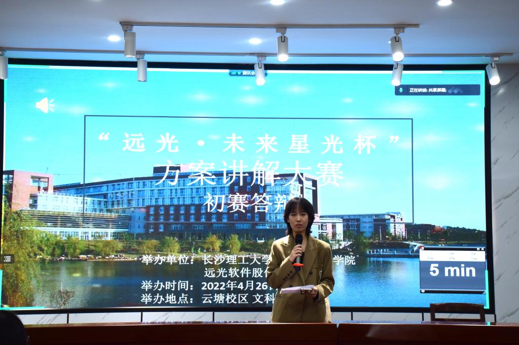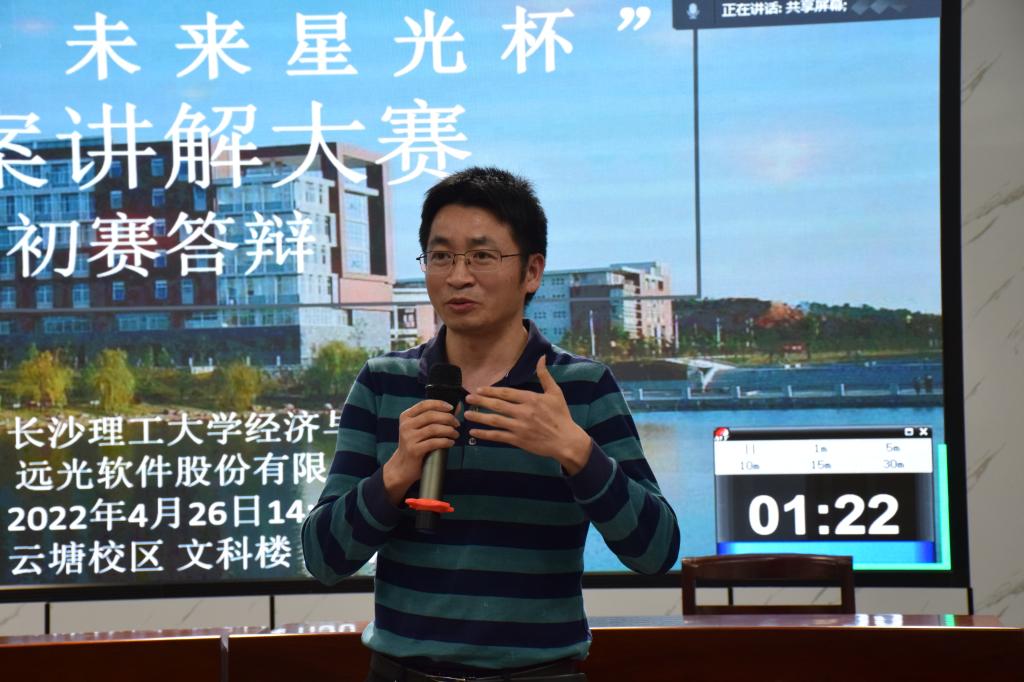 4月26日下午,经管学院2022年“远光·未来星光杯”方案讲解大赛初赛于云塘校区文科楼D207教室举行。此次比赛由经管学院及远光软件股份有限公司共同举办。经管学院袁江云、扶缚龙、曾小青三位老师担任校内评委,远光软件股份有限公司业务专家陈红霞、姜敏、李谦谦通过腾讯会议参与比赛并担任校外评委,经管学院主持队吴雨涵担任主持人。