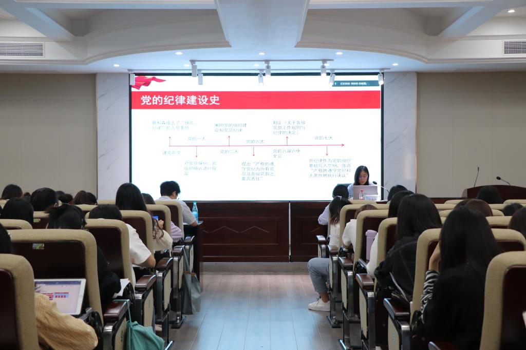 周路路紧扣《党的纪律》这一主题,围绕“党的纪律建设史、党的纪律主要内容、党的纪律处分、党的纪律建设”四方面,结合身边人、身边事,深入浅出的诠释了党的纪律的深刻内涵。在论述党的六大纪律时,她表示党的政治纪律是党最重要、最根本的纪律,做到“两个维护”是遵守党的纪律最核心的表现;在进行案例研讨时,周路路引入三个违反党纪的个人案例,警示党员发展对象们要忠于职守,做到三个“不得”。并且结合《高等学校学生行为准则》提倡大家要让遵规守纪成为一做习惯。