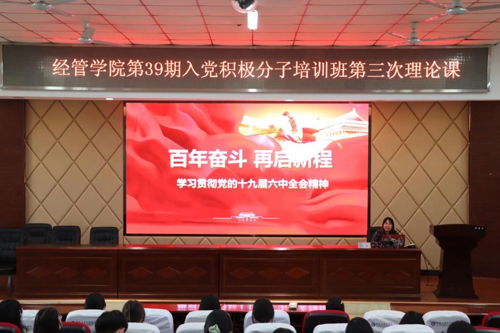 5月3日下午,经管学院第39期入党积极分子第三次理论课在文科楼A200开展,本次理论课由马克思主义学院副院长郭华教授主讲,党建辅导员叶鑫主持。