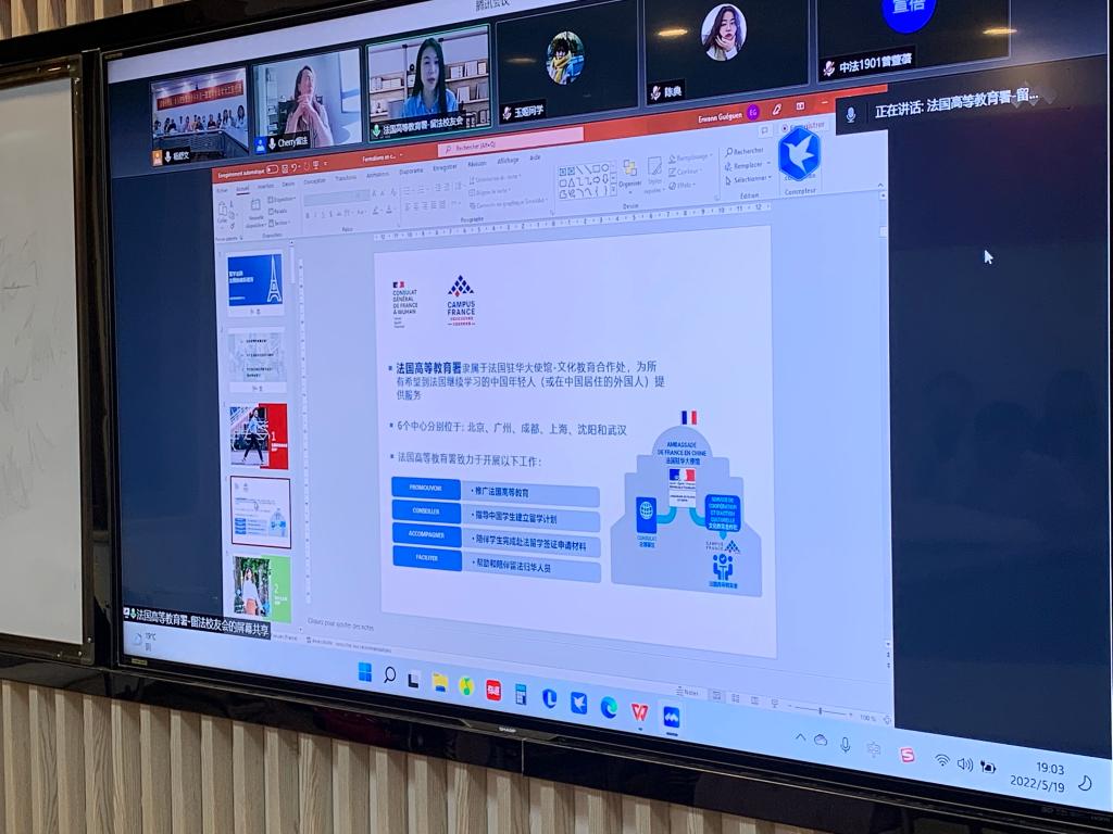 为了进一步促进国际办学合作,经济与管理学院于5月19日晚19点在金盆岭校区7教206举办了法国雷恩商学院联培项目宣讲会。宣讲会采取线上线下相结合的形式,宣讲会嘉宾为法国高教署代表佘姗姗女士,法国雷恩商学院代表冯凌燕主任。本科2021级ACCA、CFA班部分同学线下参会,其它年级部分同学线上参会。会议由经管学院辅导员杨舒文主持。