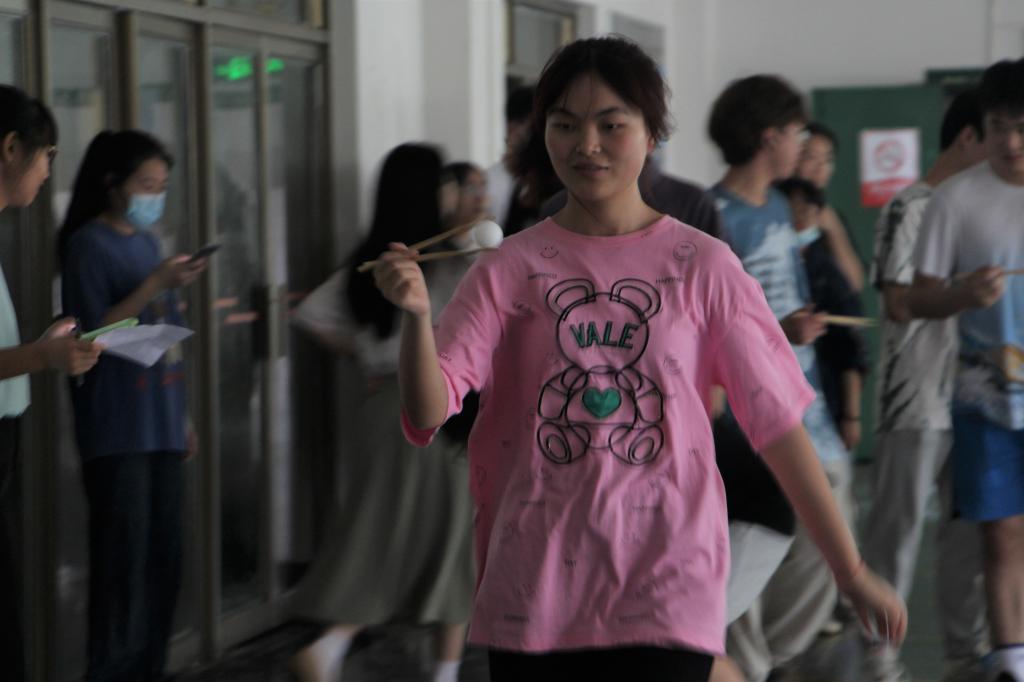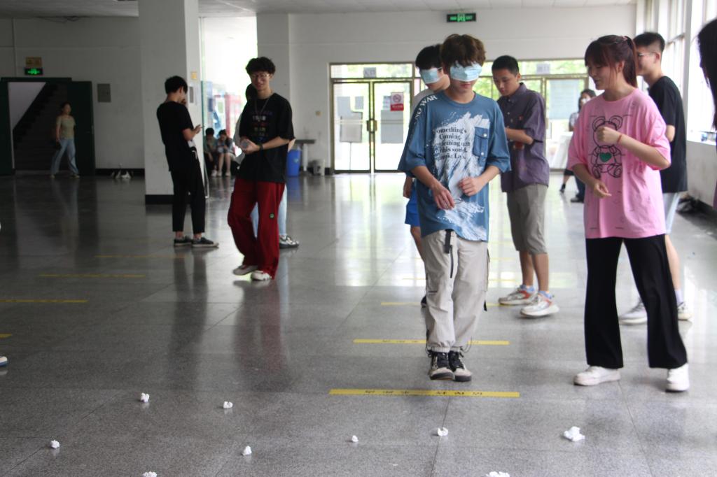 趣味运动会共有三个集体游戏,参赛者8人为一组。第一个小游戏是“筷子夹乒乓球”,每位小组成员依次用筷子将起点处的乒乓球夹起运送至终点处,参赛者注意力高度集中,全情投入。第二个小游戏是“地雷阵”,被蒙住双眼的人在队友的指挥下通过障赛道,完成这个游戏让大家体会到了团队合作、信任彼此的重要性。第三个小游戏是“飞舞的气球”,要求参赛者通过手拍、脚踢等方式使气球在不触碰地面的情况下通过赛道到达终点,同学们相互配合,体会到共同参与、分工协作和发挥个人特长的重要性。三个游戏的目的在于让参与活动的同学们感受到团队合作带来的成功喜悦,增强参与集体活动的积极性和主动性。
