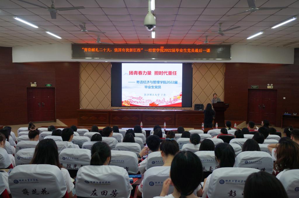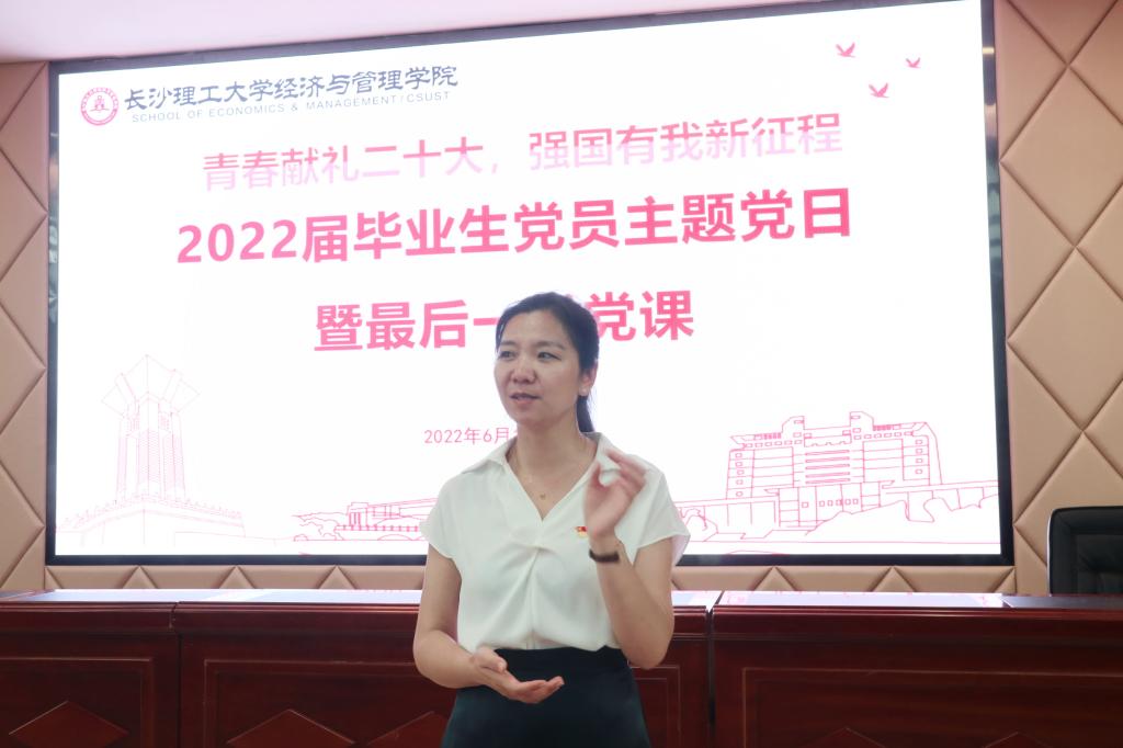 6月15日下午,经管学院2022届毕业生党员主题党日暨最后一堂党课在文科楼A200顺利开展。此次党课由经管学院党委书记丁丹主讲,党委副书记唐青、辅导员何涛、辅导员何艳芝参加会议,由毕业生辅导员叶鑫主持。