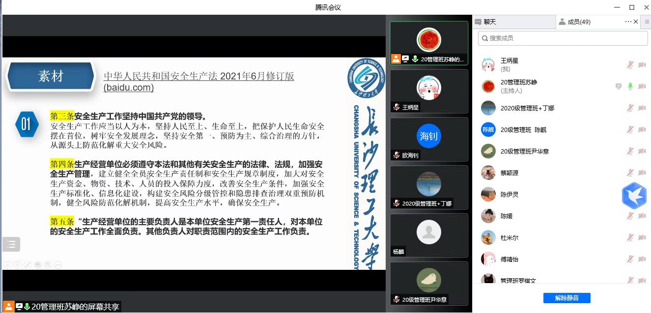 本次学习着重对“远离危房”,以及防溺水、防电信网络诈骗、防盗、消防、人身、财产、食品等安全问题进行深入探讨与交流,对《中华人民共和国安全生产法》集中进行研讨,随后各班级分别组织观看学习了“生命重于泰山——学习习近平总书记关于安全生产重要论述”电视专题片,观影过后学院研究生辅导员肖翠、吴畏带领党总支学生干部对宿舍安全进行了排查,并要求外宿外租房研究生对所住房屋进行安全隐患自查。