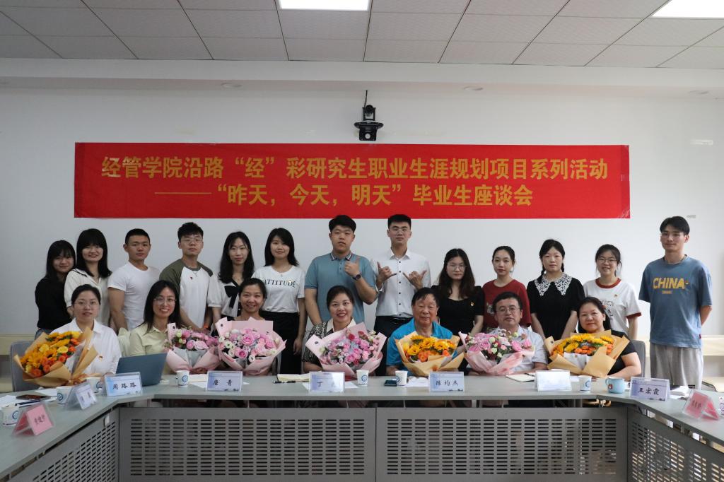 在此次座谈会上,老师们与毕业生代表亲切交流,倾听成长感悟,送上毕业祝福,共话发展愿景。毕业生代表深情回顾了求学期间的所闻所感,表达了毕业季的不舍与感动,衷心感谢母校多年来的悉心培养,立志要在实现中国梦的生动实践中放飞青春梦想。各毕业生代表结合3年研究生生涯,不仅分享他们的个人成长收获,同时也为学院高质量发展建言献策,分别就研究生实践课程学习、升学就业、院研究生会的发展等问题与老师们一一交谈。在认真聆听了毕业生代表的发言后,各位老师也对同学们的真诚分享表示感动,向所有顺利毕业的经管学子表示祝贺并分别寄语,毕业不是终点,而是开启人生新篇章的起点,同学们将要以专业所学报效社会、服务国家,迈进人生新征程,希望同学们牢记习近平总书记“不负韶华,不负时代,不负人民”的殷切嘱托,在人生道路上书写更多新的壮丽篇章,希望大家与母校保持联系,常回家看看!