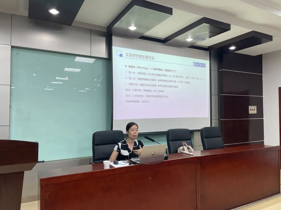 2022年6月23日晚上7:30,经管学院邀请到锐思数据产品高级培训师高小玲,于金盆岭校区七教212开展了以“金融大数据视角下的实证研究——基于锐思数据产品”的培训讲座,此次讲座由研究生辅导员吴畏老师主持,经管学院部分老师及研究生参加。