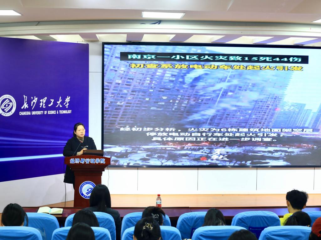 随后,肖翠结合实际案例对同学们在工作室消防安全方面要求,并着重强调了用电断电、禁烟禁火以及电动车电瓶充电三个方面,同时宣读了修订后的《经管学院研究生工作室管理条例》。此外,她还分析了当前就业形势,提醒毕业生年级同学应及时把握就业机会,尽快落实就业。