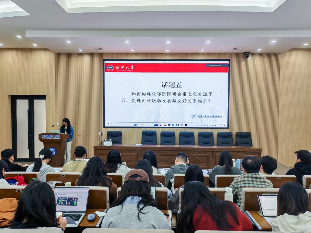 上午9:30,交流论坛正式拉开帷幕。湘潭大学公共管理学院研究生会主持人万钰介绍到场嘉宾后,伟德betvlctor1946源于英国研究生会执行主席张琳伟致开场词,表达了对此次交流活动的高度重视和对双方合作的期待。随后,两院主席团代表分别就本院研会基本情况、组织架构进行PPT宣讲介绍。我院研会主席皮力详细阐述了学院研究生会的发展历程、组织架构以及近年来在活动开展、服务同学等方面取得的成绩与经验。湘潭大学公管学院研会执行主席李嘉豪也介绍了其学院研究生会的特色工作与创新举措,为双方后续的深入交流奠定了基础。
