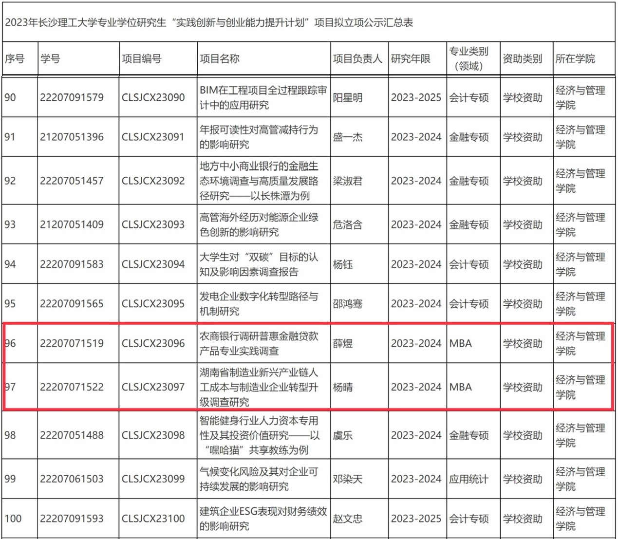 其中,经管学院共立项11个。伟德22级MBA学员薛煜、杨晴申请的项目获得审批,成功立项为学校资助项目。