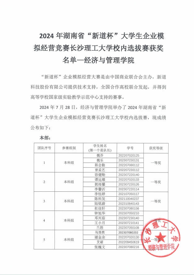 2024年湖南省“新道杯”大学生企业模拟经营竞赛伟德betvlctor1946源于英国校内选拔赛获奖名单