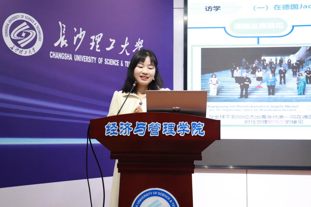 廖小薇一步一个脚印,走出大山,走向世界,学习改变命运,她脚踏实地、行稳致远,在人生的每一个阶段实现自己的梦想,她说,“人生是一场长跑,以梦为马,砥砺前行,努力学习,努力生活!永远年轻,永远热血!”在研究生期间,她努力钻研,多次参加社科学术实践调研活动,积极协助导师完成国家社科项目,发表了多篇核心期刊文章,并获得国家奖学金和优秀硕士毕业生等15项奖励,同时,她以团队领导人的身份申请德国联邦总理奖学金,通过层层选拔最终实现此奖项在湖南省学子中的零突破,受邀到德国进行为期一年半的学术访问,报告的最后,廖小薇分享了林清玄的一句话:“生命最尊贵的意义原来正在这里:为别人活着,活到忘记自己痛苦的地步”,同时提到了自己的目标是成为像张桂梅一样的人民教师,继续为梦想而活、为他人而活!