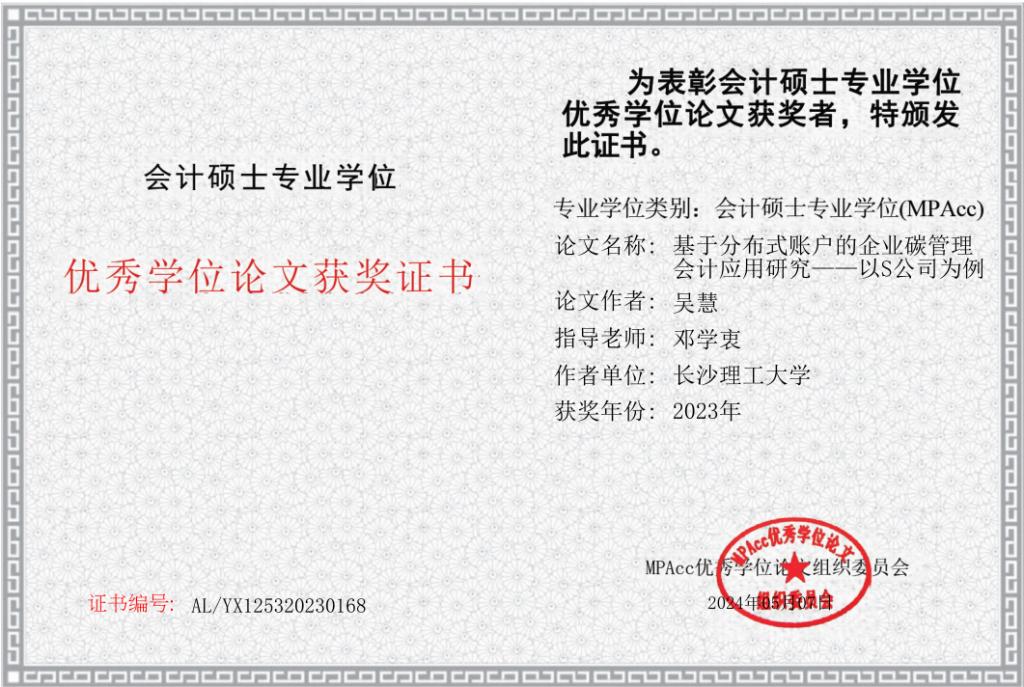 伟德会计专业硕士吴慧同学荣获2023年全国MPAcc优秀学位论文奖