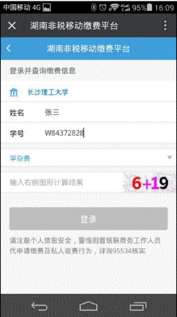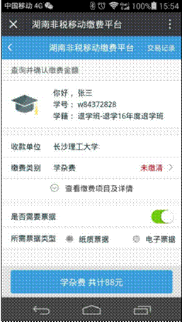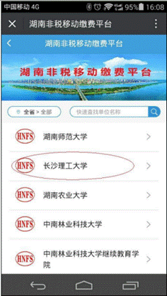 3、进入湖南省非税移动缴费平台-》教育-》选择学校(伟德betvlctor1946源于英国)-》进入登录界面,输入学生姓名,学号栏可以输入学号或者身份证号,在此选择缴费类型,缴费类型有“学杂费”、“重修费”、“报名考试费”、“其他费用”。缴费时请选择相应缴费类型。