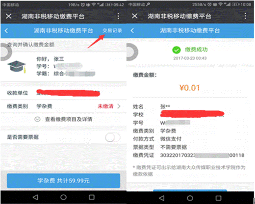 4. 由于数据传输有一定的时间差,请在缴费成功后间隔一定时间再到该平台查看交易记录,确认费用是否已缴清;