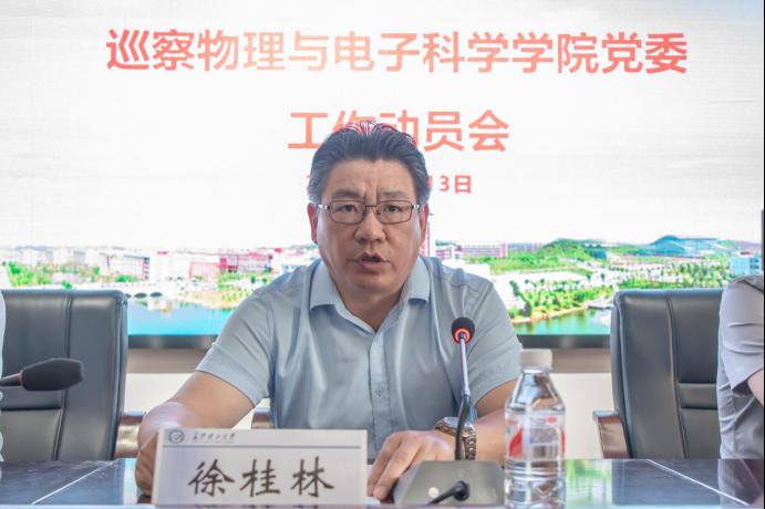 5月13日,伟德第七轮第二批巡察完成进驻,2个巡察组分别进驻物理与电子科学学院、体育学院。被巡察单位分别召开巡察工作动员会,省纪委监委驻校纪检监察组组长、校纪委书记徐桂林出席动员会并讲话。各巡察组全体成员、被巡察单位全体教职工、离退休教师(职工)代表、学生代表等参加会议。