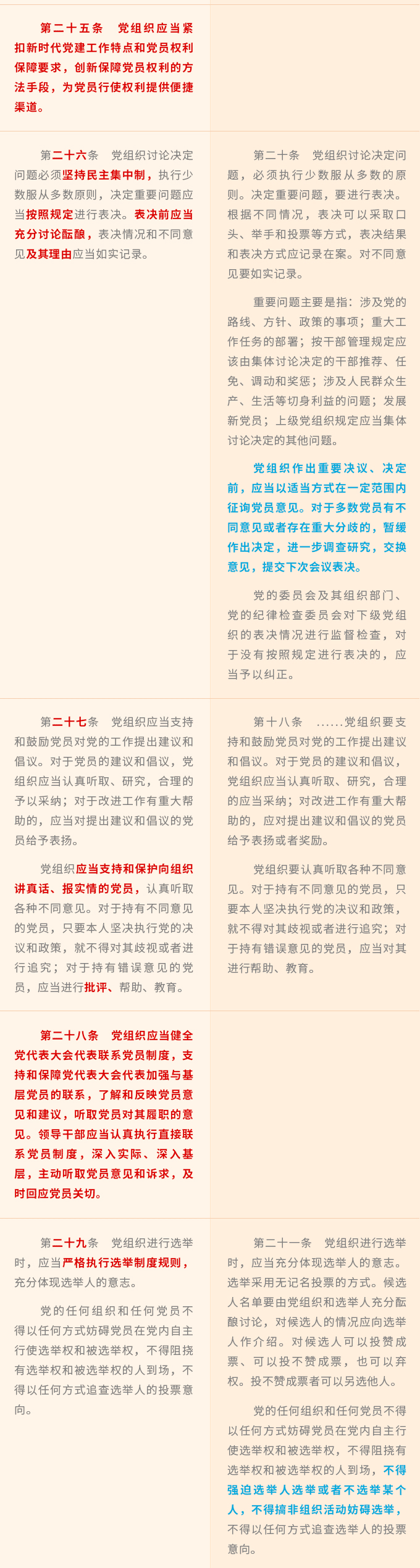 《中国共产党党员权利保障条例》修订前后对照表