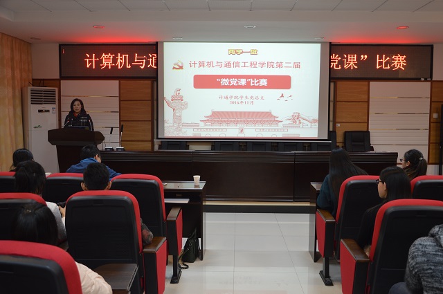 为巩固“两学一做”学习成果,进一步提高大学生党员思想政治理论水平和党性修养,11月24日晚,计通学院在云塘校区理科楼B311会议室进行了计通学院第二届"微党课"比赛。计通学院党委书记方琼、党委副书记王任飞出席。比赛由16级研究生党员张彤主持。