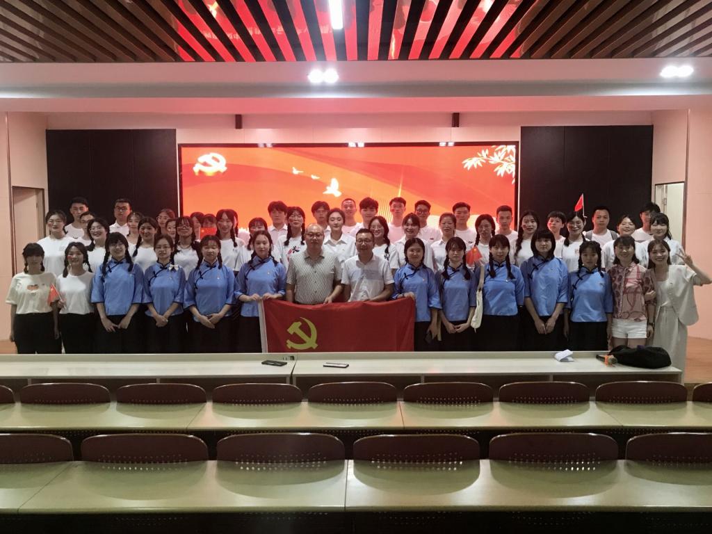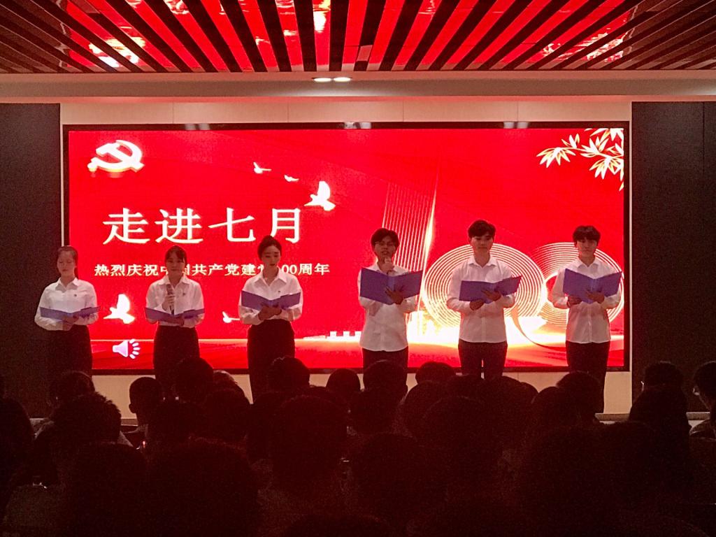 6名学生党员《走近七月》的朗诵,拉开展演活动序幕,他们声情并茂地回顾了党的历史,歌颂了党的光辉历程,表达了对党的伟大前途的憧憬,并带领党员同志们重温入党誓词,重温自己的初心与使命。本科生第一党支部女生党员带来了《绣红旗》舞蹈,她们以优美的舞姿,讲述那些红旗、党旗紧紧相连的高光时刻与动人故事,表达了对祖国的热爱,对党百年生日的赞美与歌颂。2020级研究生党支部全体党员同志合唱《唱支山歌给党听》《歌唱祖国》将活动推向了高潮,展现了青年党员应有的热血与活力。活动现场还展播了“百年党史人人讲”活动部分优秀视频作品,通过教师、学生党员自拍、自导、自演的视频作品,带领党员们重温了党的活动过程中,学百年历史,进一步坚定了学生党员的信仰与追求。