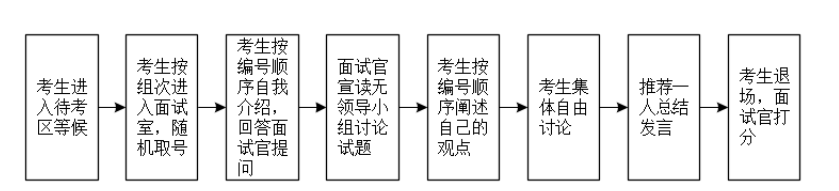 无领导小组讨论是采用情景模拟的方式对考生进行集体面试。通过一定数目的考生组成一组(10人),学生之间进行讨论,讨论过程中不指定谁是领导,学生自行安排组织。面试官通过观测考生的组织协调能力、口头表达能力、抗压能力、理解和分析能力、解决问题的能力等,对考生进行综合评价。