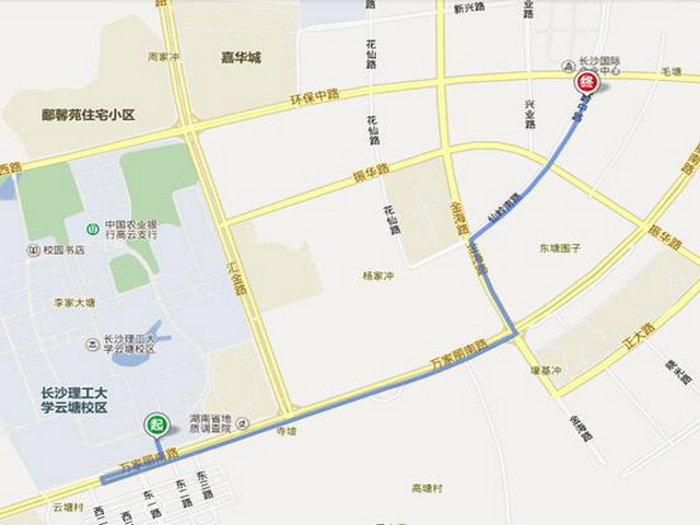 从南门出发,沿万家丽路前行掉头,直行至金海路左转,之后右转入仙岭路,在接近环保路之前,路右手边有人值守大门进入;