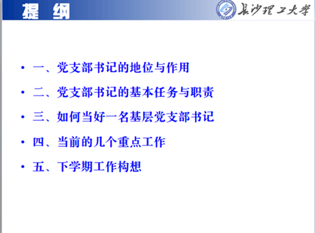 接下来,方琼从支部书记的地位与作用、支部书记的基本任务与职责、如何当好一名基层党支部书记、当前的几项重点工作、下学期工作构想五个方面展开了培训。要求各基层党支部在“两学一做”学习教育中,加强对党的十八届六中全会精神的学习,切实加强和规范党内政治生活,落实好“三会一课”等制度,提高党支部的整体工作水平,为学校各项事业发展提供坚强的保障。