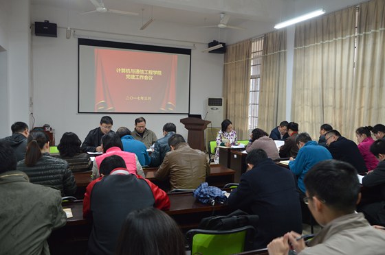 3月28日下午,计通学院在理科楼B103召开了2017年度党建工作会议。院党委委员、院长助理、各行政科室主任、各党支部书记及委员、各系(中心)主任参加了会议。院党委副书记王任飞主持会议。