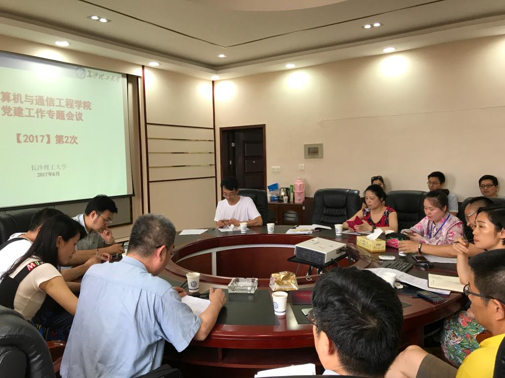 6月20日下午,计通学院在理科楼B502召开了2017年度第二次党建工作会议。院党委部分委员、各党支部书记、各党支部委员参加了会议。院党委书记方琼主持会议。