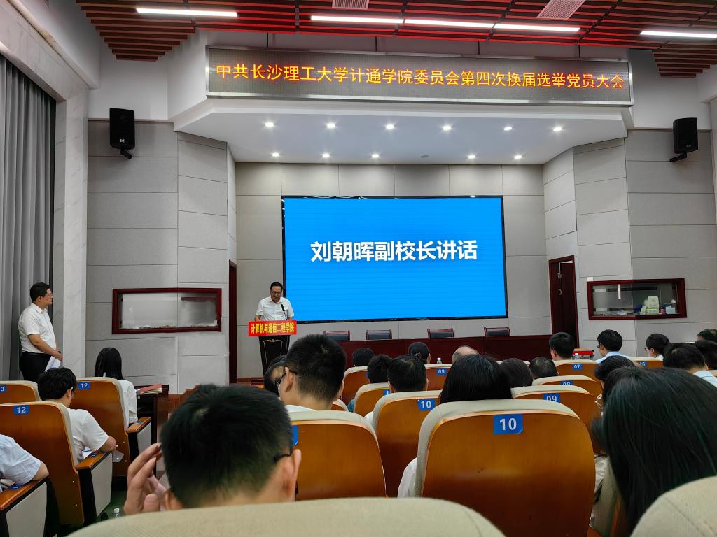 6月27日下午,计算机与通信工程学院党委在工科二号楼B301会议室召开换届选举党员大会。校党委委员、副校长刘朝晖、校党委组织部副部长王煜坤莅临指导,学院181名师生党员参加大会。大会由张锦同志主持。