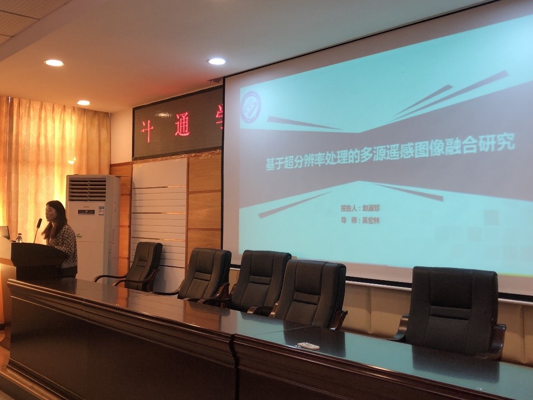 首先是伍悠同学主讲的“基于相关滤波和特征融合的目标跟踪算法” 研究。 伍悠同学从目标跟踪的应用角度切入,提出目标跟踪当前存在的难点—遮挡、光线、动态性以及相似性。结合多特征和动态学习等方法,伍悠同学提出了一种快速目标跟踪器,能够有效提高目标跟踪的效果。接下来是赵淑珍同学主讲的关于“超分辨率处理的多源遥感图像融合”研究。赵淑珍同学通过诙谐的图片,先向在座同学讲述了什么是超分辨率。赵淑珍同学讲到,多源遥感图像融合相比于单源,能表现出更多的特征,对场景的描述更加准确,有助于定位识别和后期分类。最后是由李捷同学主讲“基于低秩张量补全的图像修复”研究。李捷同学讲到,低层计算机视觉的问题是逆向的,因为这些问题要求根据从三维到二维变换后的输出来进行重构。考虑到逆问题往往是不适定的,李捷同学结合低秩张量来修复图像,能够很好的刻画图像高维数的本质结构,利用已知的数据元素恢复丢失的元素。