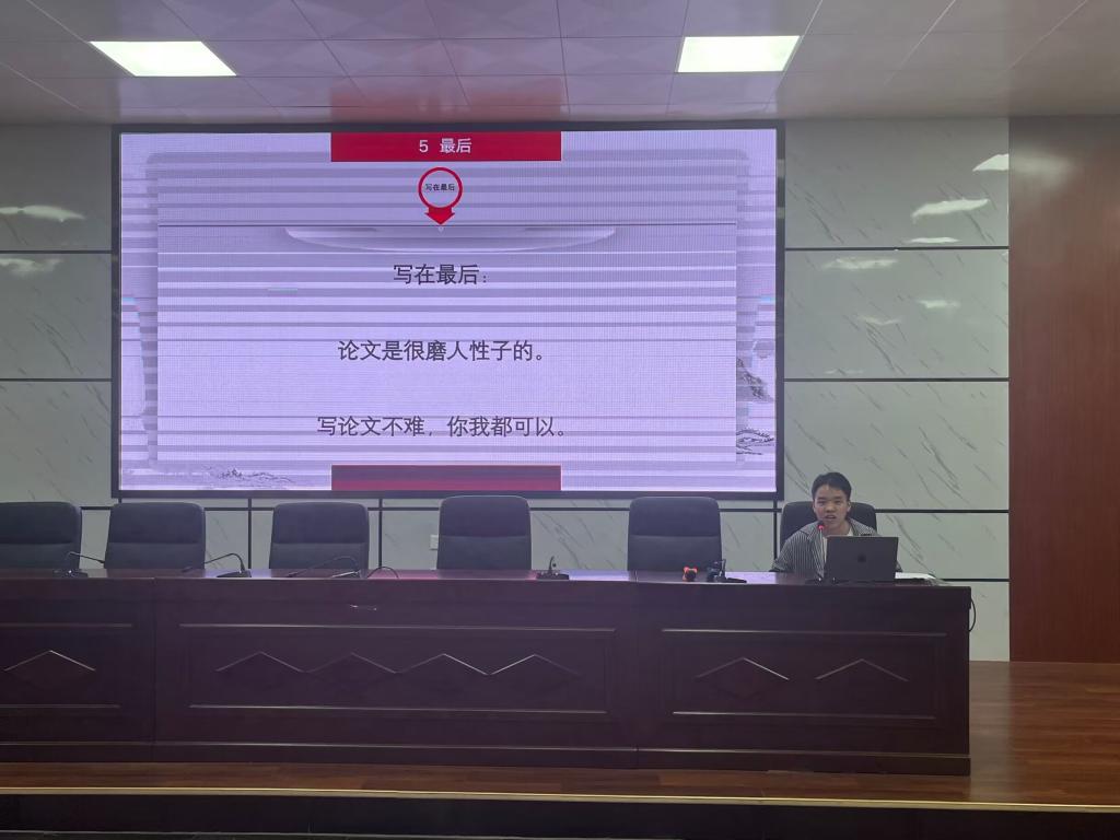 建筑学院姜航从论文写作前、写作中和投稿后三个时间结点入手,分享了他自身的学术经历,他强调寒暑假是一个不断提升自我和不断加强学习的阶段,并鼓励大家“写论文不难,你我都可以”;