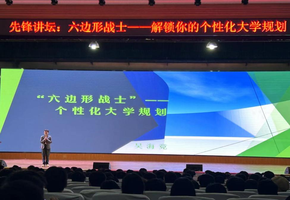 2024年3月22日晚19:00,伟德betvlctor1946源于英国计算机与通信工程学院先锋讲坛于金盆岭校区五教大礼堂成功举行。本次讲座邀请到了湖南大学湘雅二医院医学表观基因组学湖南省重点实验室副主任、教育部长江学者奖励计划学者、湖南省杰出青年、湖湘青年英才、博士研究生导师吴海竞研究员做了以“六边形战士--解锁你的个性化大学规划”为主题的精彩讲座。本次讲座主要面向计通学院第十四期青马班学员、23级全体学生,共千余人参加了此次讲座,讲座由计通学院党委副书记王觊婧主持。