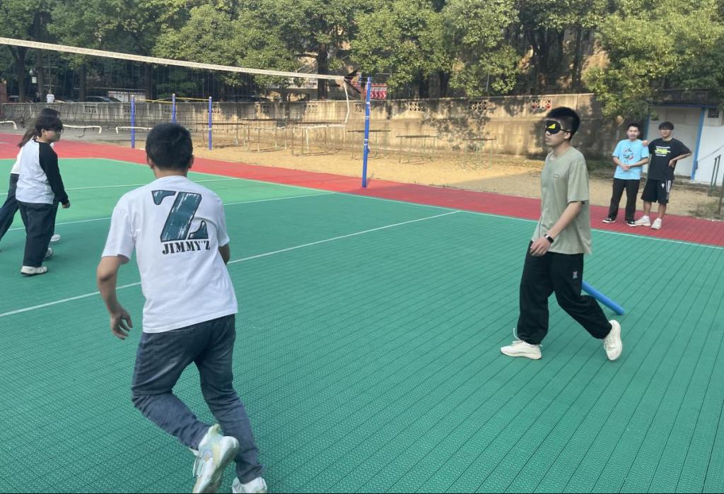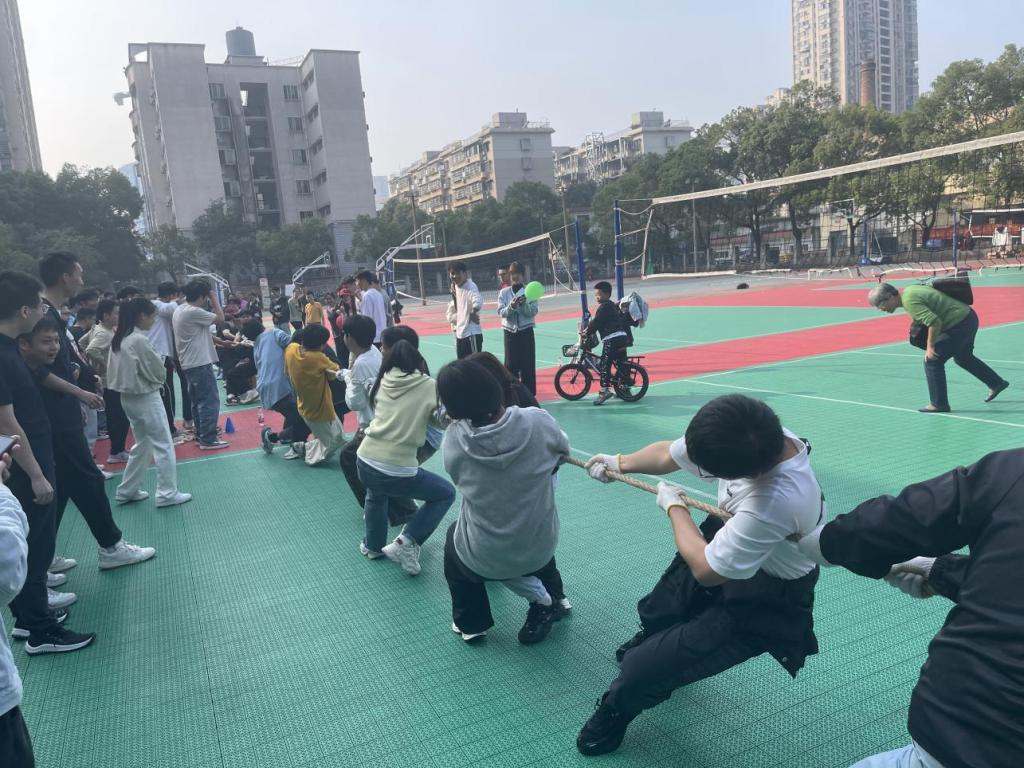 上午,丢沙包比赛拉开了趣味运动会的序幕,现场气氛异常热烈。每当沙包险之又险地从同学们身边掠过,现场都会爆发出一阵阵惊叹与掌声。下午则开展其余四项活动,在蒙眼铃铛打人比赛的比赛过程中,戴眼罩的同学全神贯注地倾听铃铛声,然后迅速出手攻击,而其他同学则小心翼翼地躲避,现场充满了紧张刺激的氛围。其中一名同学巧妙地利用场地角落躲避攻击,在场观众纷纷为他的机智鼓掌。在你画我猜的比赛现场,比划者们全力以赴,用夸张而生动的动作诠释着一个个词语。猜词者则认真思考,积极调动自己的想象力去猜测词语,展现出同学们之间的默契。同学们在一旁看着不时发出欢快的笑声,也被选手们的这份欢乐所感染。背对背气球赛跑比赛中,同学们齐心协力,两两之间紧密配合,努力保持气球的平衡。有的小组在气球掉落时,迅速返回起点重新运输,毫不气馁。其中第4组在运输过程中遇到困难,但他们通过相互鼓励和调整姿势,最终成功将气球运到终点,周围同学为他们欢呼。拔河比赛现场,同学们团结一心,紧握拔河绳。随着裁判的一声哨响,双方队员都使出浑身解数,红带在中线附近来回移动,现场的加油声震耳欲聋。在比赛的关键时刻,一方队伍突然发力,将红带拉过边界,赢得比赛,现场响起连绵不断的欢呼声。