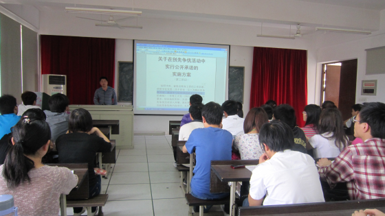 为进一步推进学校创先争优活动深入开展,激发基层党组织和党员创先争优的内在动力,扎实做好创先争优活动2011学年度(第二阶段)基层党组织和党员公开承诺工作,2011年5月6日中午12:30,计通学院在理科楼B311召开了2011年创先争优活动工作部署会议,会议由院学工办任志祥老师主持,院党委副书记方碧波、院学生党建辅导员彭珊老师莅临会议并进行了相关的工作安排,院全体学生党员、预备党员、本期发展对象到场参加。
