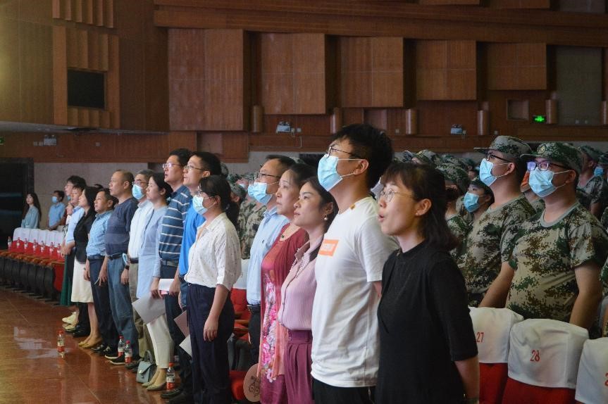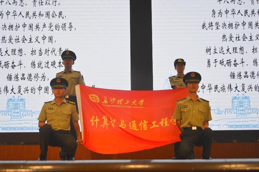 本科生新生代表陈昊宇表达了自己赴青春之勇、奏时代强音的伟大梦想。研究生新生代表韩西宇呼吁大家尝试未知、发现可能、收获热爱,并拿起科研武器,为中华大国之崛起贡献自己的绵薄之力。教师代表毛宜钰则以自己对大学生活的感悟和看法为切入点,告诉新生们要定位清晰,明确目标,为自己所要追求的东西去奋斗拼搏,与此同时更要加强组织和团队协作能力的锻炼。在观看祝福视频之后,计科系李文军老师、软件工程系邓泽林老师、网络工程系廖年冬老师、通信工程系李骥老师、大数据系殷苌茗老师、计应系孟爱国老师、实验中心王静老师对各个专业做了详细的专业介绍,此外,王静还针对各科创平台的问题进行简要阐述,最后,在2022级军训教官的带领下,新生们郑重宣誓。