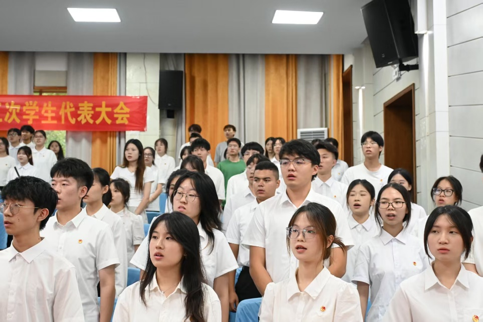 正式会议在庄严国歌声中开幕。贺鹏为大会致开幕辞,肯定学院学生会在思想引领、组织建设、社会实践等方面取得的显著成绩,并勉励新一届学生会传承优良传统,以饱满热情服务同学。