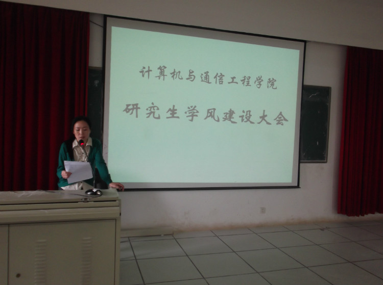 5月4日下午,计算机与通信工程学院在理科楼B311召开研究生学风建设大会。2012年是伟德学风建设年,计通学院借此召开本次研究生学风建设大会。院长李峰,院党委副书记方碧波、副院长徐蔚鸿,研究生导师史长琼以及计通学院全体研究生出席了大会,由徐蔚鸿副院长主持。