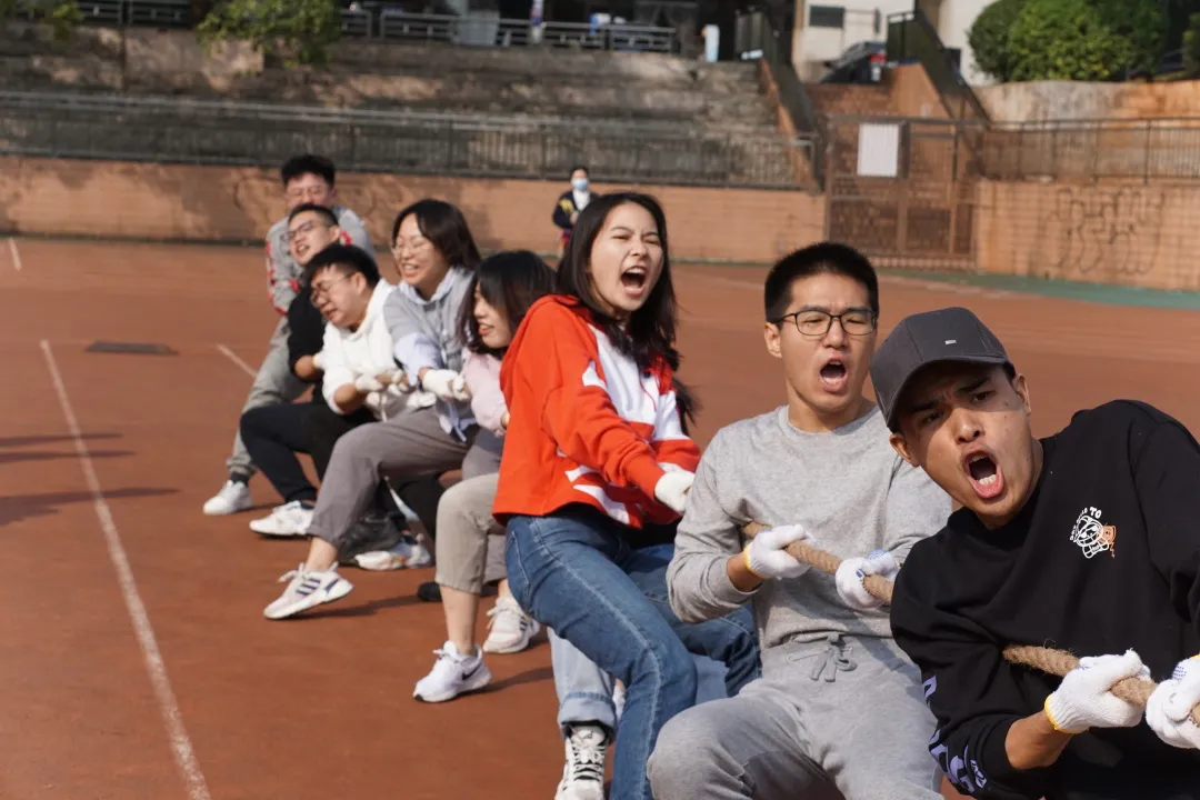 拔河的赛场上,几支参赛队伍经过激烈的层层厮杀、轮轮筛选,在研一研二的两个年级分别诞生了三支最强战队;在单脚火车跑环节,大家大声呼喊着“一二一二一二”,响亮的口号、整齐的步伐,又或者是东倒西歪的让气球掉下而被原地罚站;前呼后拥追逐赛是对大家耐力的考验,也是大家的默契展现,大家紧紧的靠在一起,团结合作、勇往直前,围着一个共同的目标前进,大家都从未放弃,一直坚持走到终点;在托球接力比赛上,大家更是用尽浑身解数去托球,无奈小小的乒乓球不听话,是大干一场还是求稳慢行,每个同学都有不同的选择;最后在你画我猜环节,搞笑却又认真的表演,或手忙脚乱百思不解,或配合默契心有灵犀,大家捧腹大笑而自己也乐在其中。