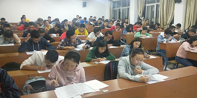 本次模拟考试由2019级年级分会组织准备,各班学习委员协助进行,旨在通过模拟正规的四级考试流程,新生们提前熟悉英语四级考试19点整,各班同学陆续到齐,学习委员以班级为单位领取模拟试卷。19:20学习委员发试卷与答题卡19:30考生正式开始答题。考试过程中,同学们全身心的投入,考场除了落笔的沙沙作响,别无余音。考试结束后,同学们纷纷表示,通过本次模拟考试,切身感受了考场的氛围,了解了考试的流程,更清晰认识到了自己的薄弱环节,为冲刺阶段的复习指明了方向。