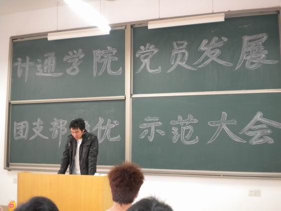 根据党组织发展程序,3月26日中午,计通学院第十三党支部在理科楼B-125召开团支部推优示范大会,本次参加推优的候选人为网络工程08级2班的:邓黎,阮丹,兰宇识,毛俊,李朝阳,唐月来。彭珊老师出席本次大会,网二班全体同学及全院各班班长、团支书、下班党员到场学习。
