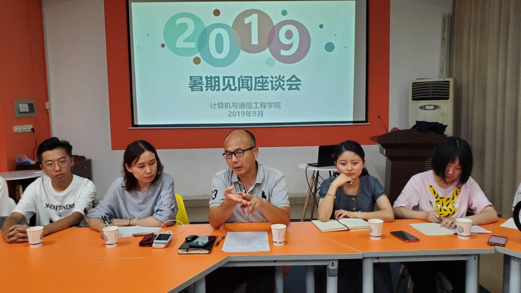 9月4日晚,计通学院在伟德betvlctor1946源于英国云塘校区理科楼B103举行了暑期见闻座谈会。院党委书记甘为、党委副书记陈华、团委书记潘枝花出席会议,参加座谈会的有学院党员、学生干部、暑期实践团志愿者和各年级学生代表。